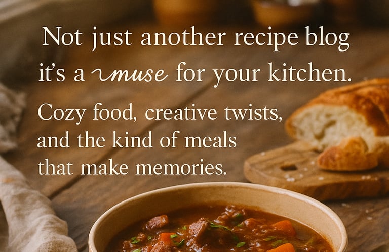 “From our kitchen to your comfort zone, Meal Muse blends storytelling, flavor, and a dash of chaos to inspire your next bite.”