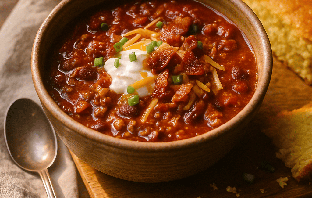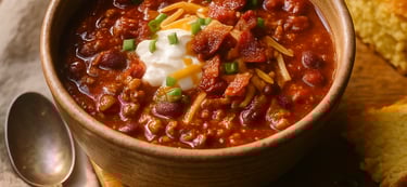 A bowl full of comfort — smoky, savory, and soul-warming. This Meal Muse Chili blends bold spices, crispy bacon, and slow-simmered flavor into the ultimate cozy-day meal.