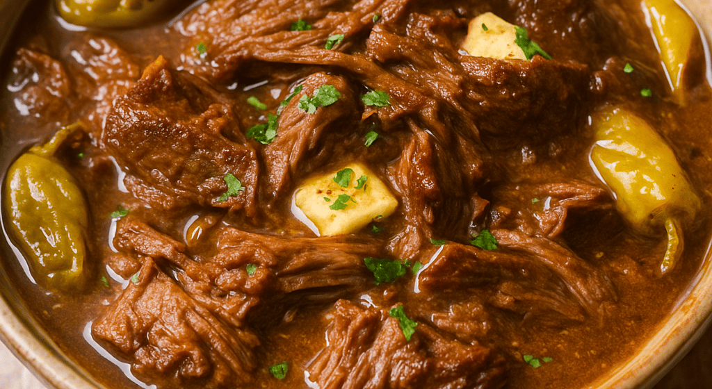 Fall-apart tender, buttery, and tangy-savory perfection. This Meal Muse Mississippi Pot Roast takes slow-cooked comfort to another level — melt-in-your-mouth beef, pepperoncini heat, and rich pan gravy that tastes like home in every bite.